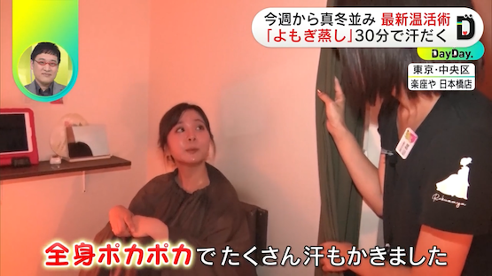 日本テレビ「DayDay.」で楽座やのよもぎ蒸しを取り上げていただきました。