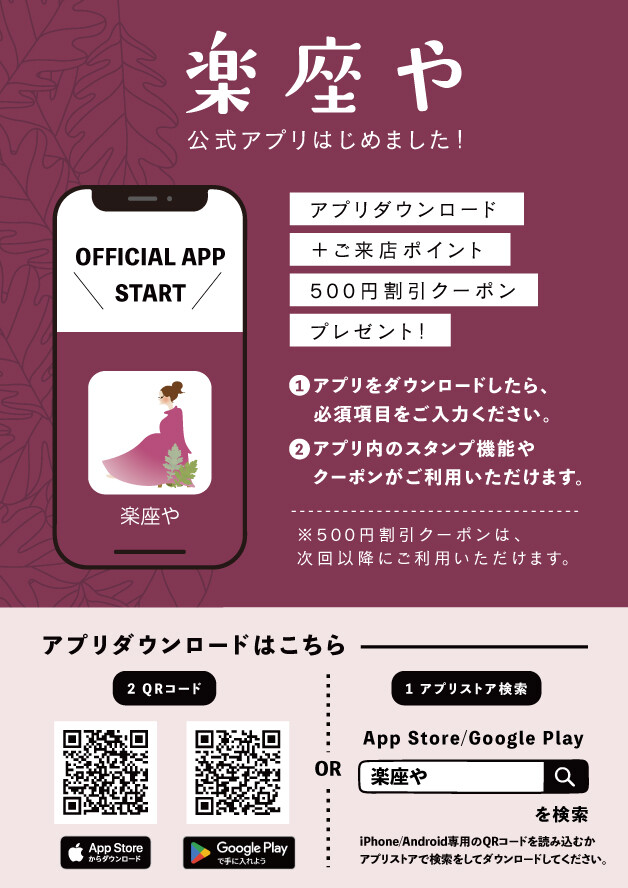 公式アプリ又は紙のスタンプカードで、期間内にポイント貯めていただくと「楽座や」VIP会員様に昇格!☆